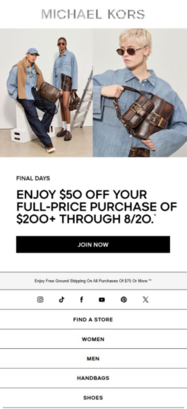 Michael Kors is a globally recognized fashion brand known for blending luxury with everyday wear. From clothing and handbags to watches and accessories, the brand captures a sleek, modern style that’s both elegant and practical—bringing a sense of jet-set glamour to pieces that are made to be worn and lived in.